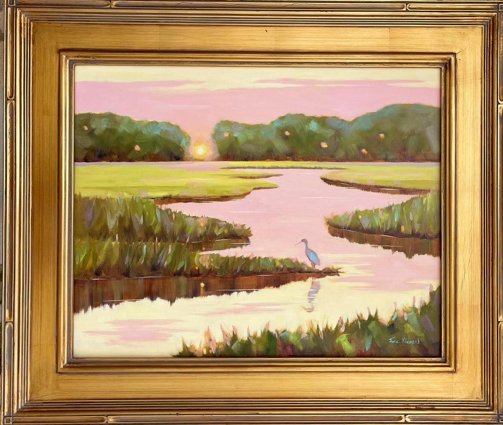This painting draws from the serene landscapes of Georgia's coast and the birds that live there. It seeks to capture both the stillness of the place and the quiet elegance of its wildlife.