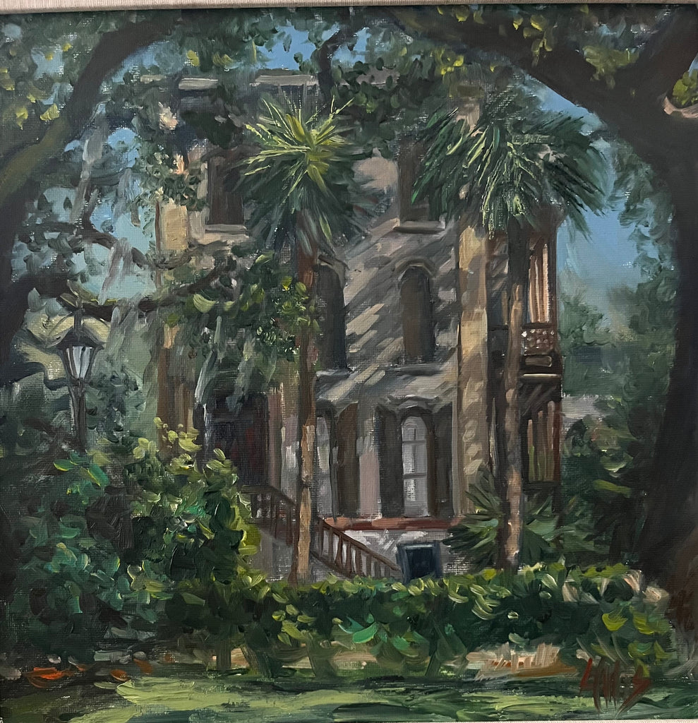 I was drawn to the way the light and shadows defined this house. And the historic aspect with all the beautiful trees framing the view.