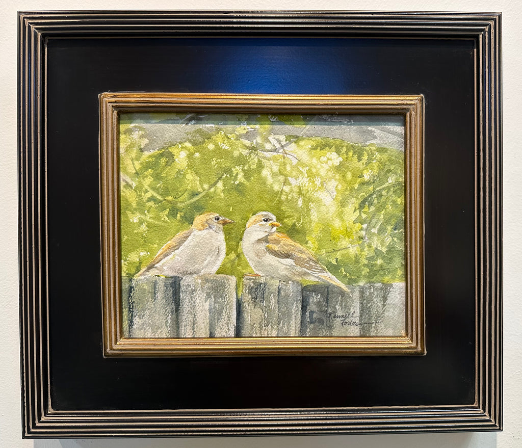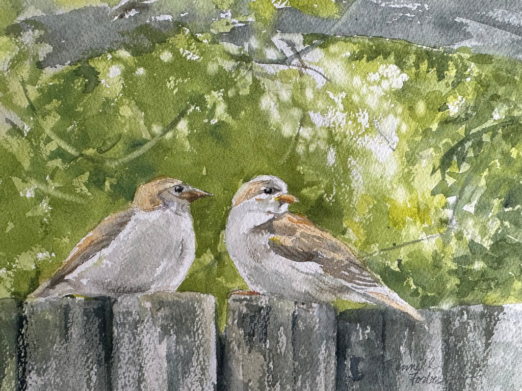 My granddaughter had a long list of things she wanted to do with me this summer. One was to paint out doors and another to go bird watching. The outing inspired this painting.