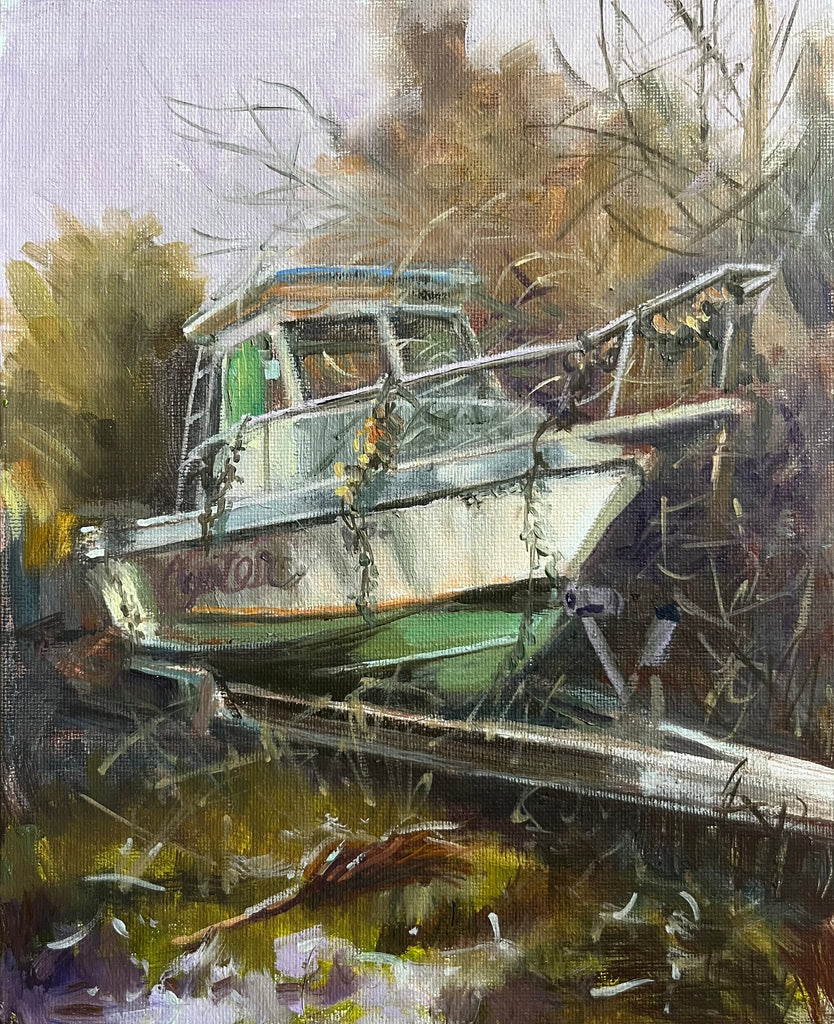 I love old boats and painting in Apalachicola, Florida. This boat has been in the same spot for years. It had to be painted.