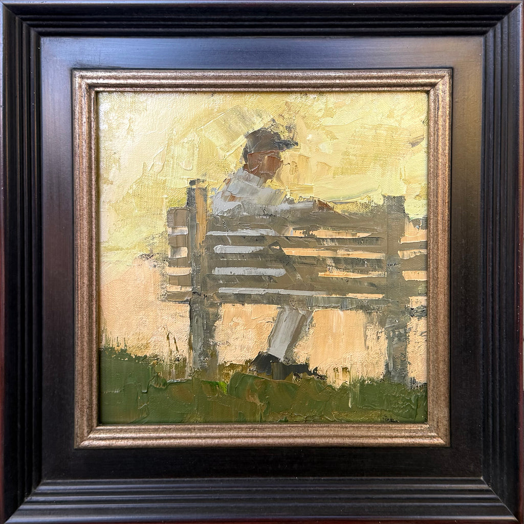 This painting features a gentleman taking a rest on a bench on the side of Forsyth Park in Savannah, GA.
