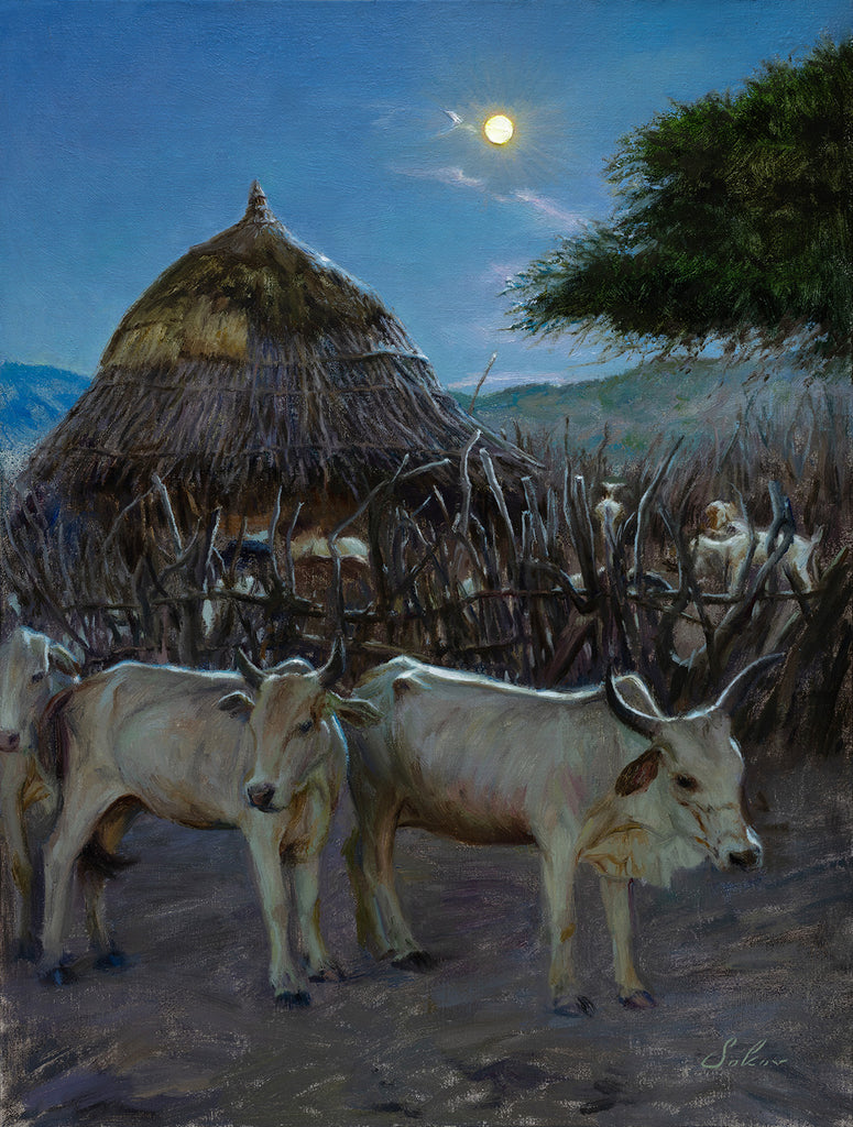 The cattle returns from a day of grazing in the Hamar tribe of the Omo Valley in Ethiopia. These particular cattle belong to Inte, the matriarch of the tribe, on who's land I stayed. On the cattle you can see scarification designed to mark the ownership of these cattle as belonging to Inte and her family.