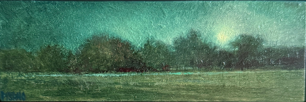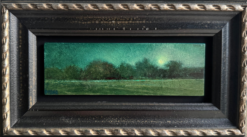 Originally this was painted one afternoon at another plein air competition alongside my friend and painter Krystal Brown. There were many peacocks on this property strolling around and it was magical. I have shown this painting in its original form numerous times but was never satisfied with it so I decided to transform it to a nocturne.