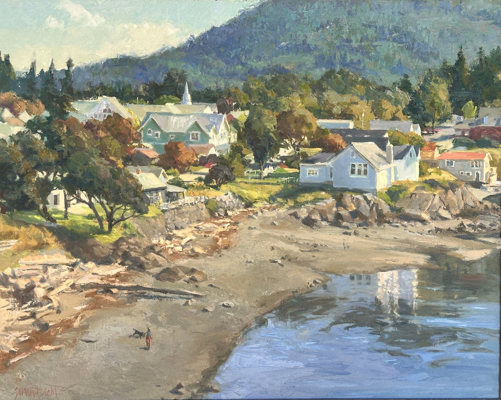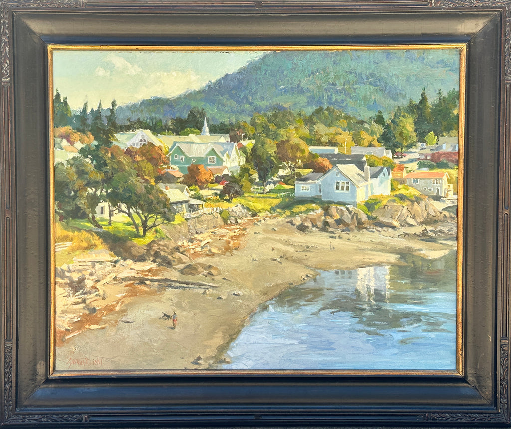 There was no way to Paint this from life. I saw the view peek-a-booed through a woods that were right against the edge of the road that sloping straight down into a woods. It was like an old movie, I would see the view, then blink, a tree trunk, see the view and then blink, a tree trunk. I almost couldn't believe my eyes! Was it really that GOOD??? I made my friend, who grew up there and was saying, you cant get a photo of it, there is no way to stop! There is no pull off! Well, never say never, she parked at the first possible place she could and I jumped out of the car scrambling along the edge of the trees looking at oncoming traffic! When I could see the view again, I headed down the steep hill like a mountain goat, the athleticism of it all being not my style ! Needless to say, the place I shot the photo reference for this was not really safe, for me anyway! But I just had to paint it -I had no choice but to risk it . The painting reminds me of the worth of stretching limits to follow your dreams! Well, it was worth it (but don't tell my kids, who would think the hill wasn't that steep and the danger not that big!